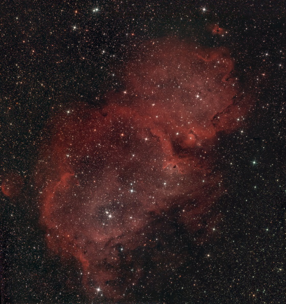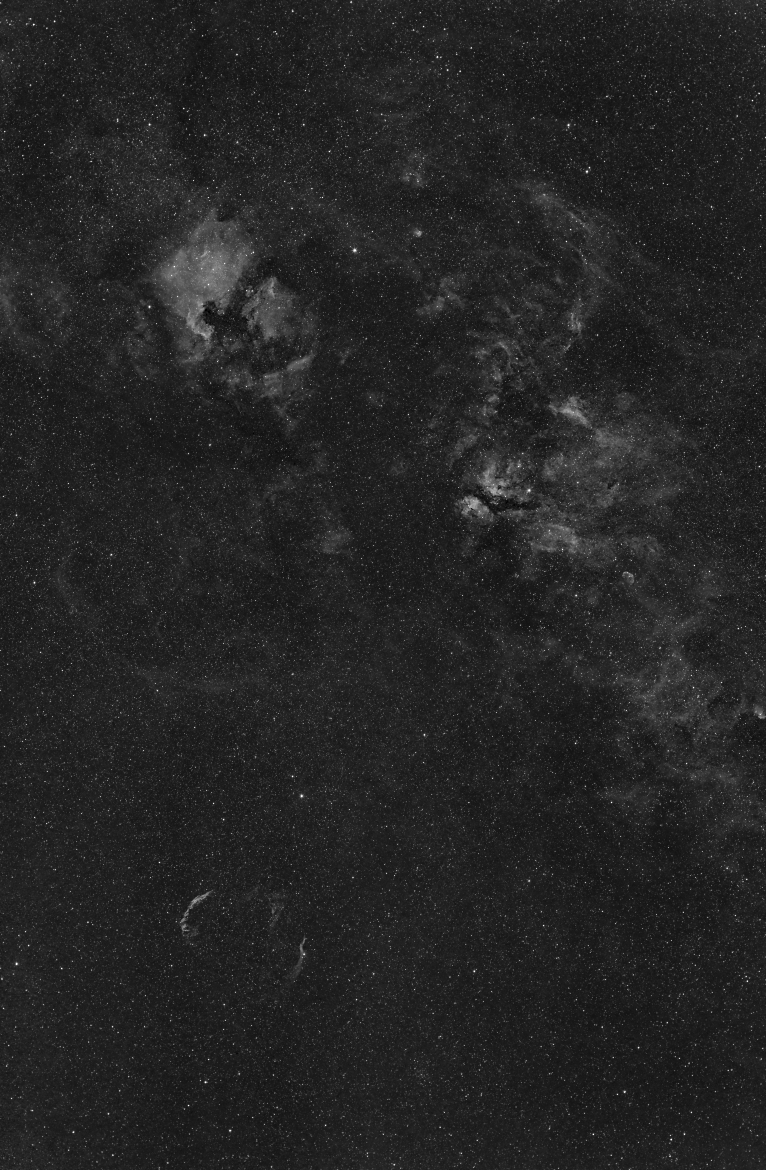 Die Region um den Schwan (Cygnus) im H-Alpha-Licht mit enormen 11 Stunden Belichtungszeit. Dieser "Deep-Sky"-Marathon bringt selbst die schwächsten Wasserstoffnebel im Hintergrund der Milchstraße zum Vorschein, die das gesamte Bildfeld füllen.
